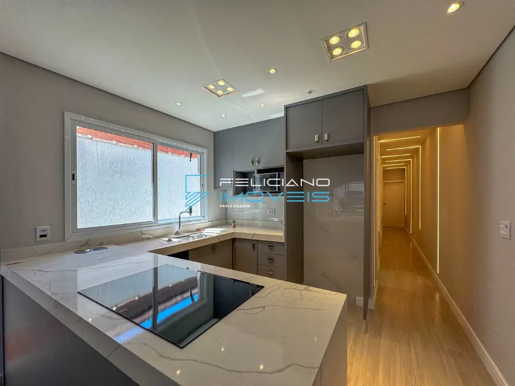 Cozinha moderna com fogão de indução e forno embutido