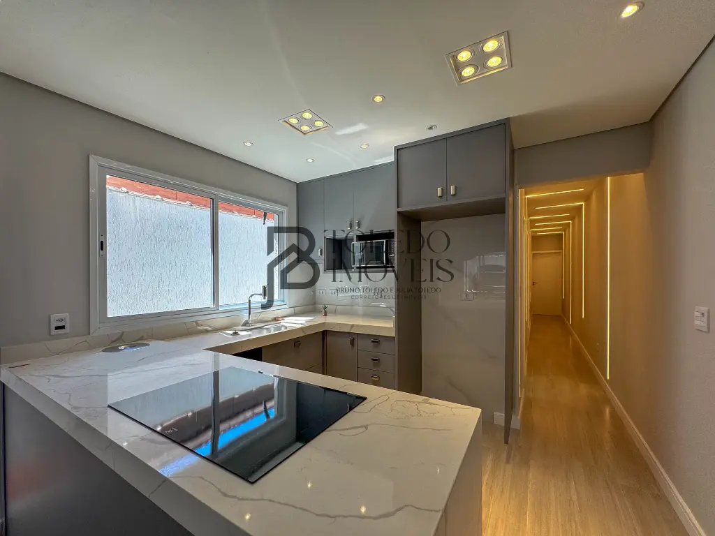 Cozinha moderna com fogão de indução e forno embutido