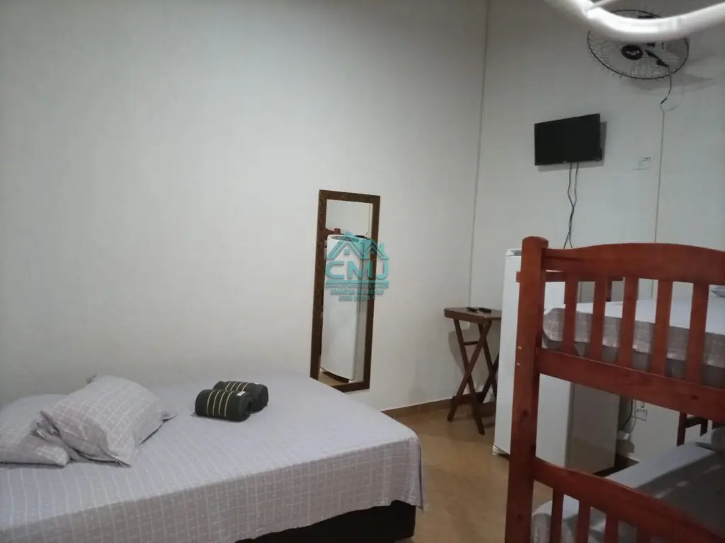 As 8 suítes são individuais e mobiliadas com televisão, 1 cama de casal,1 beliche, ventilador, geladeira, espelho, ventilador, tanque para lavar roupas.