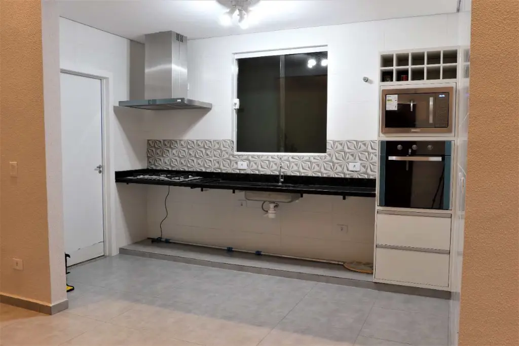 A cozinha foi planejada com conceito aberto, totalmente integrada com a sala (com acesso à lavanderia e corredor lateral) já equipada com torre quente, contendo microondas de painel e forno elétrico de painel, cooktop e coifa. Todos os equipamentos são da melhor qualidade da marca Electrolux.