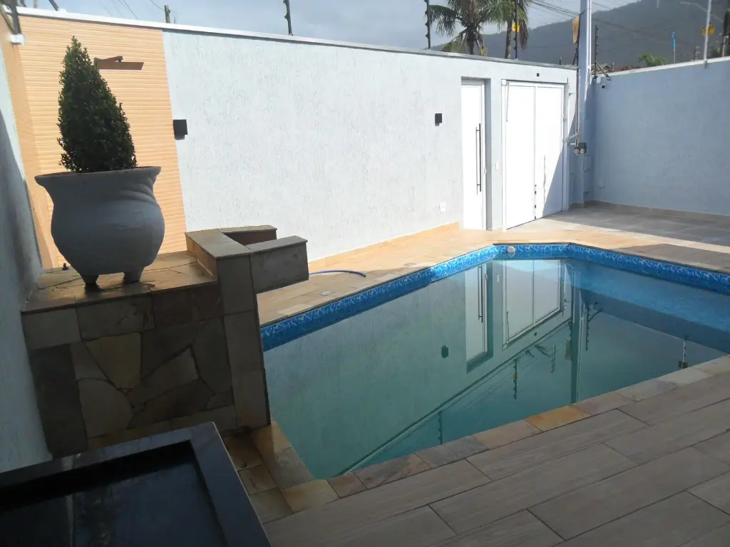 Seja bem-vindo(a) à descrição deste imóvel de alto padrão localizado no bairro Solemar, em Praia Grande-SP. Esta deslumbrante casa conta com 3 dormitórios, sendo 1 suíte, e 3 banheiros, em uma área construída de 147.95m².
