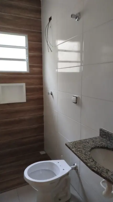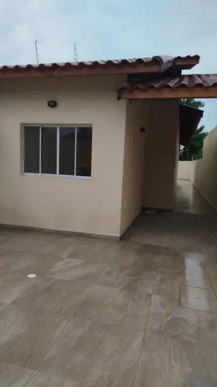 Casa no Jardim Umuarama, em Itanhaém, litoral sul de São Paulo, lado serra, em rua calçada.