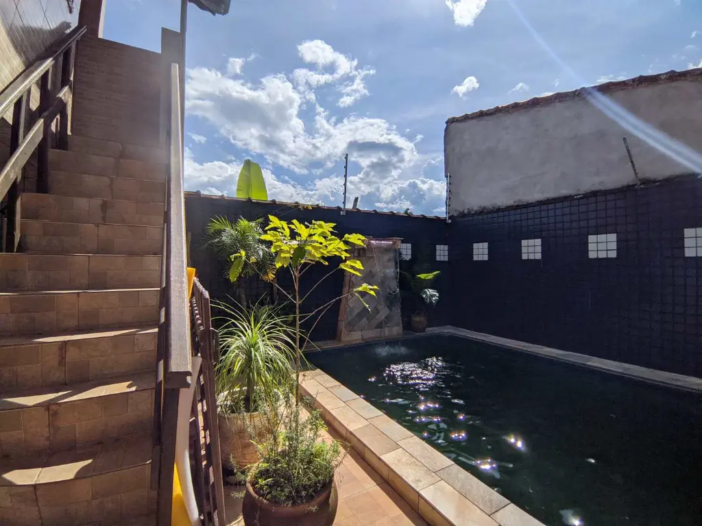 - Piscina com cascata de pedra;