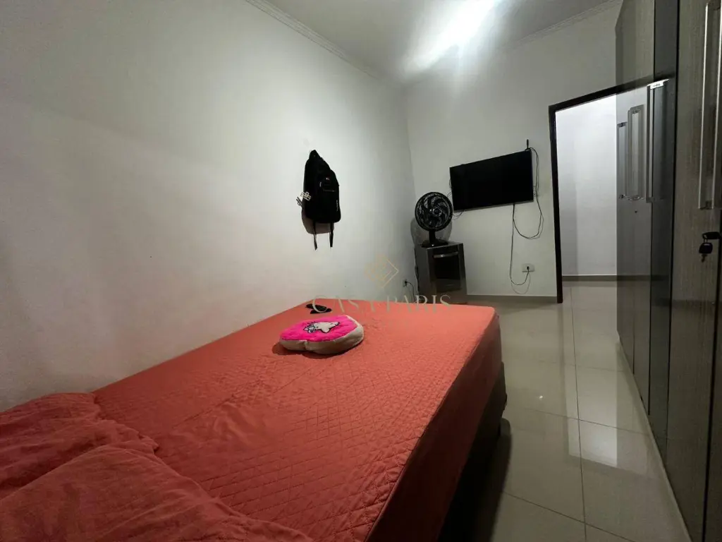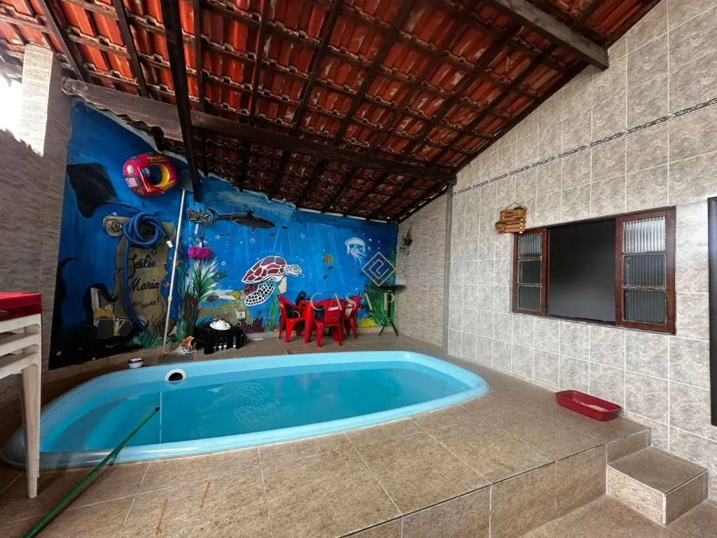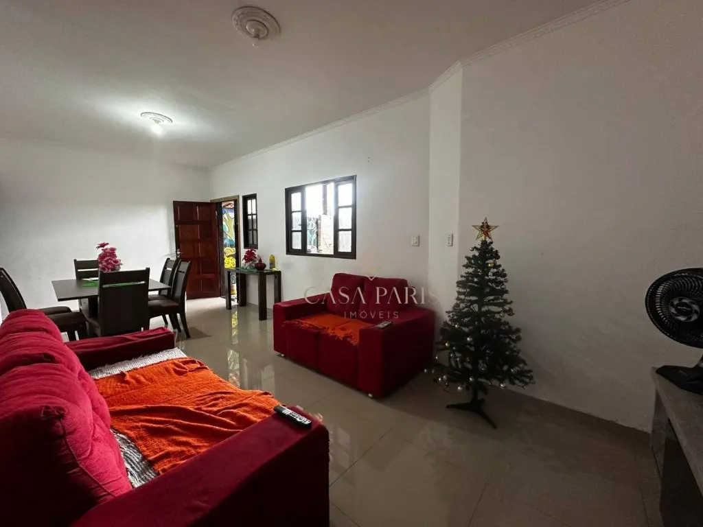 Casa com 2 dormitórios, sala dois ambientes, cozinha, área de serviço, 2 banheiros sociais sendo 1 deles na parte de trás do imóvel, amplo quintal e 1 vaga de garagem coberta.
