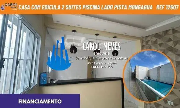 CASA COM EDÍCULA À VENDA - 2 SUÍTES | PISCINA COM CASCATA | LADO PISTA | FINANCIAMENTO | MONGAGUÁ |