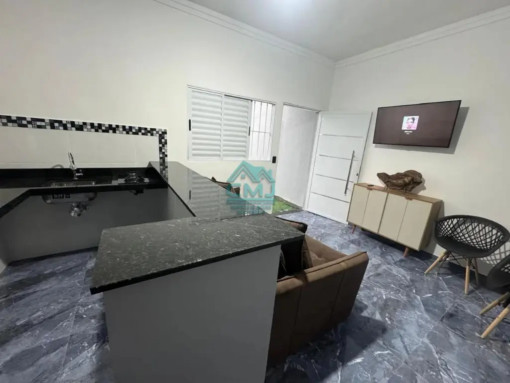Imóvel possui 2 dormitórios sedo uma suíte, 2 banheiros sociais, sala de estar e de jantar, piscina, churrasqueira, cozinha, área de serviço e garagem.