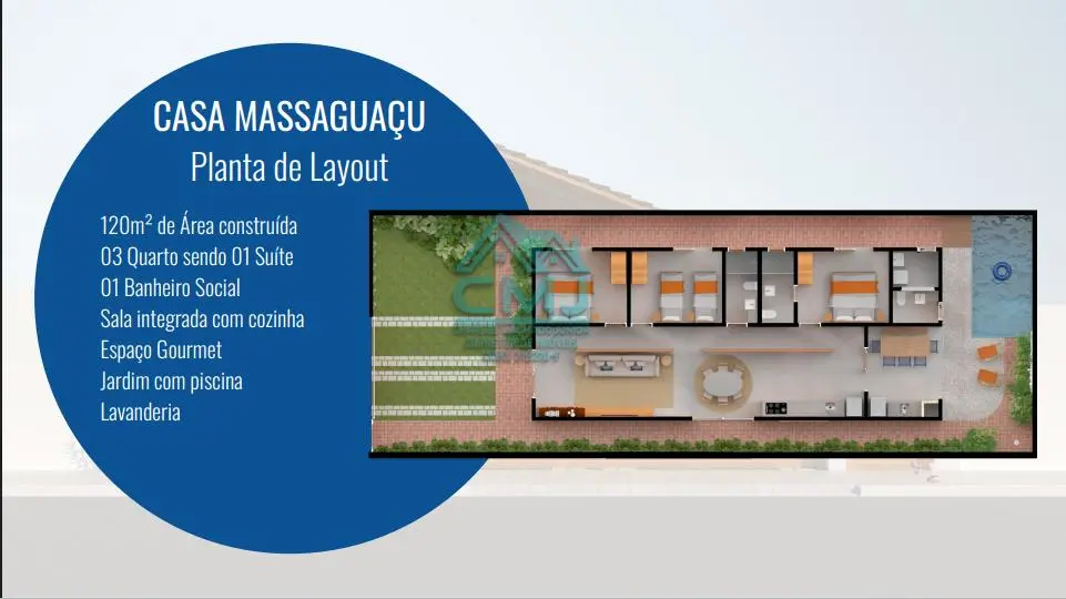Imóvel moderno e sofisticado, possui 3 dormitórios sendo 1 suíte, 1 banheiro social, sala, cozinha, área de serviço, piscina, churrasqueira e 2 vagas de garagem.