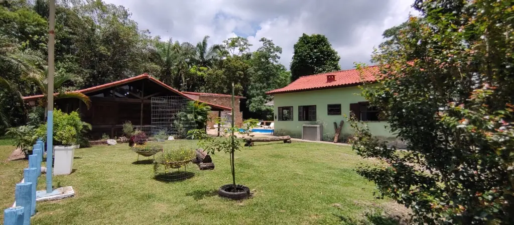 Pomar com diversas arvores frutíferas, algumas já produzindo e outras recém plantadas, tais como: mais de 200 pés de banana, (nanica, prata, vinagre e 1 pé de banana maçã), 3 pés de cajá-manga, 8 pés de jaboticaba, araça, jenipapo, 3 jaqueiras, pitangueiras, acerola, carambola, caju, atemoia, abiu, limão caipira e siciliano, laranja lima, cereja do rio grande, mexerica, kinkan, ameixa, cacau, abacaxi, 4 pés de caqui, entre outros.