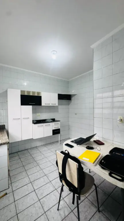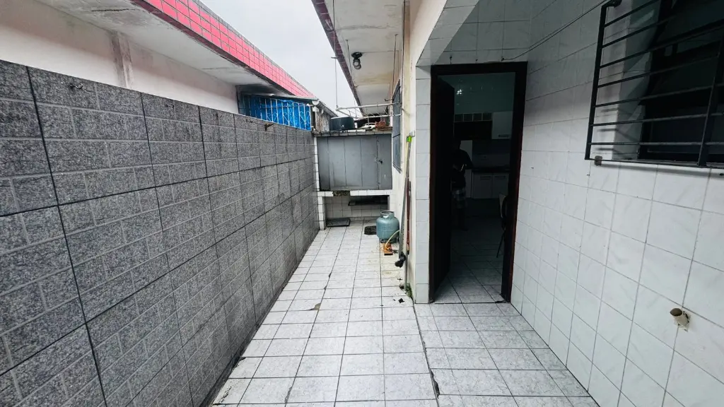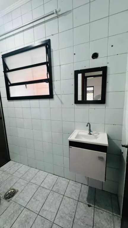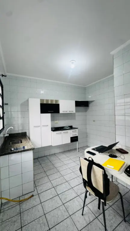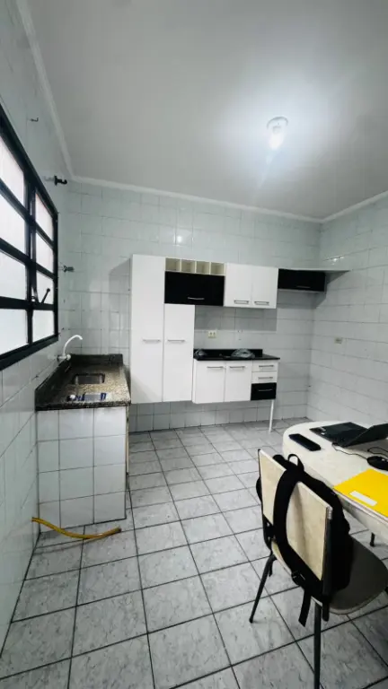 Cada em condomínio fechado em Praia Grande de frente para garagem da CPFL a menos de 50 metros da Ministro Marcos Freire no bairro Tudo Basto na direção da Vila Guilhermina localização excelente, 1 dormitório, sala, cozinha ampla, banheiro, quintal privativo com churrasqueira e uma vaga de garagem.
