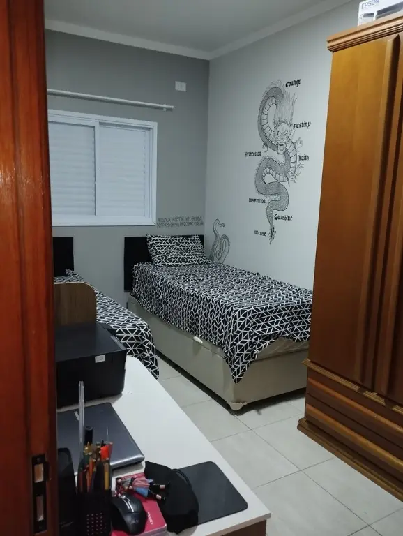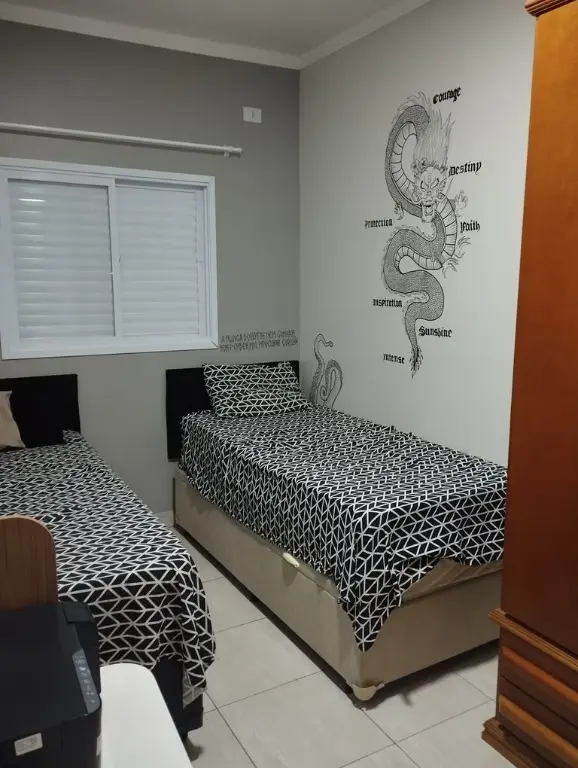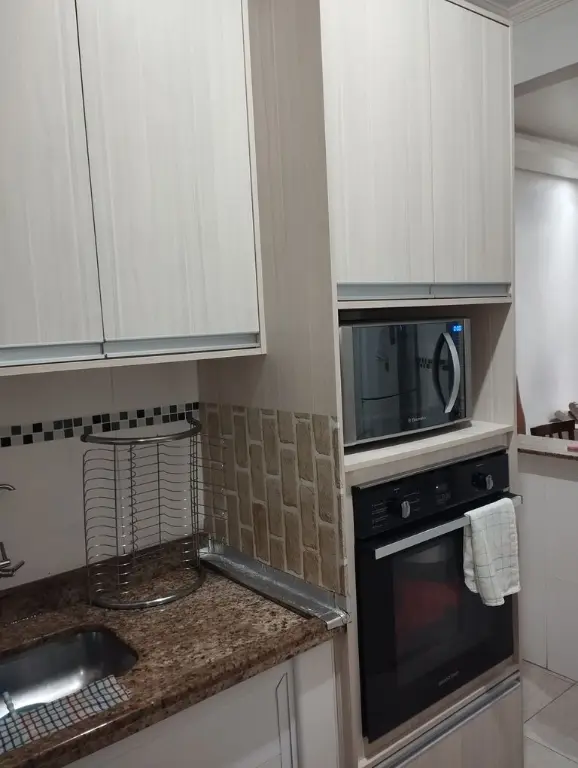 ?? Teto rebaixado, Cozinha planejada, armário no dormitório, painel na sala, cama de solteiro, Cooktop, forno elétrico e ar condicionado.