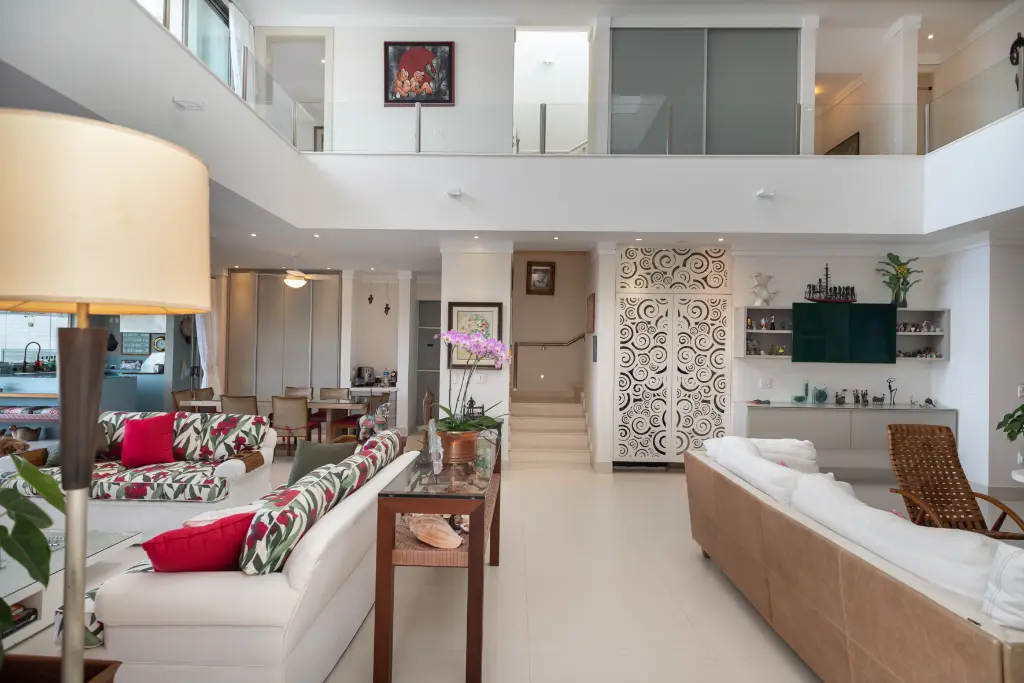 Amplo Living climatizado, com vários ambientes e integrados ao lazer Home office no primeiro andar, jacuzzi com vista panorâmica no solarium.