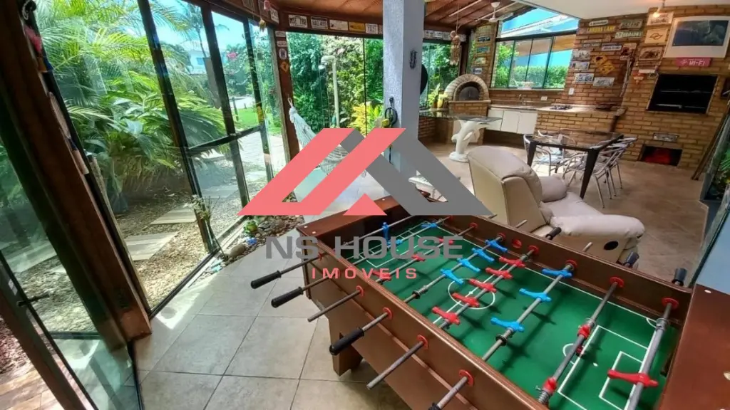 Venha conhecer essa incrível casa mobiliada, com 5 dormitórios (sendo 3 suítes) a apenas 150 metros da praia. Com sala de estar em dois ambientes, ar-condicionado em todos os quartos, churrasqueira, forno de pizza, mesa de pebolim, lavabo, hidromassagem, quintal, sauna úmida e área de serviço independente.