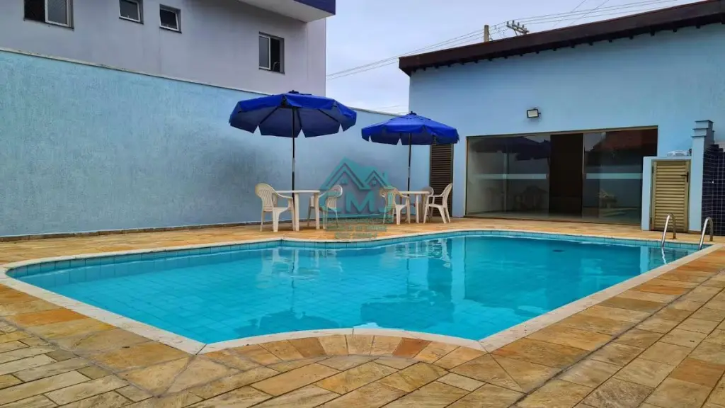 Condomínio dispõe de piscina e garagem.