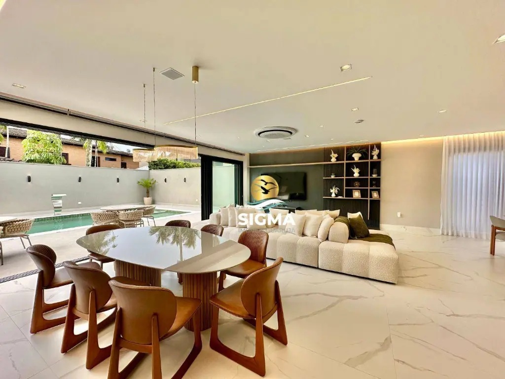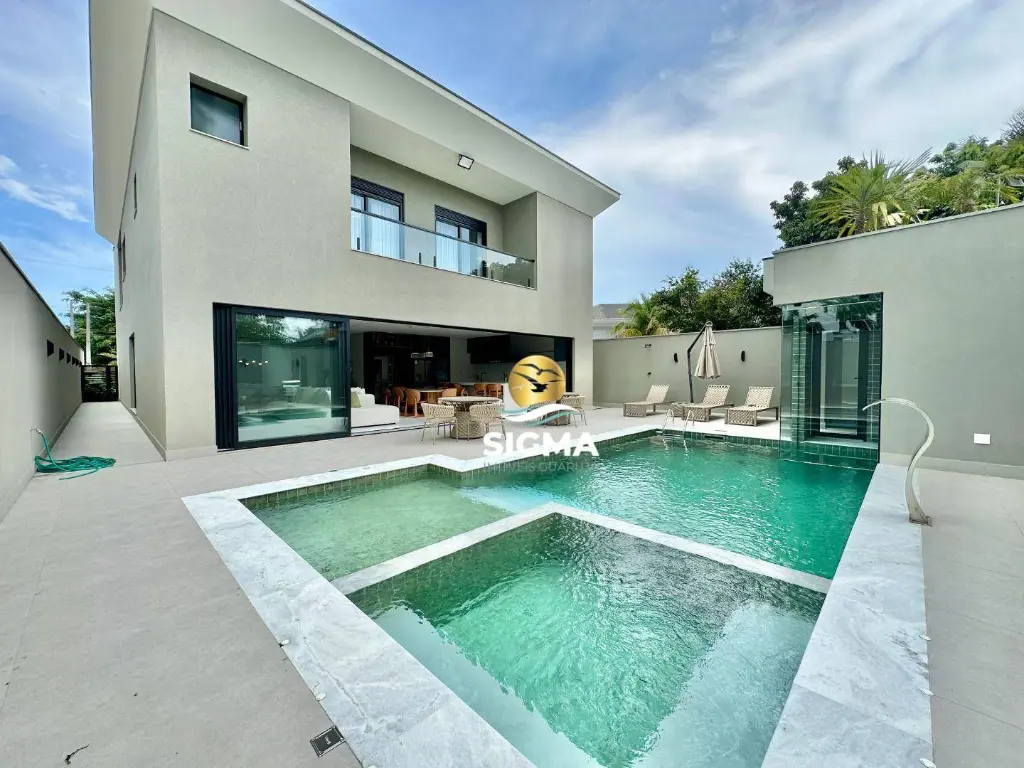 Casa novíssima de alto padrão à venda no Condomínio Jardim Acapulco, Guarujá, decorada, ampla, confortável, clara e arejada com ótima distribuição. Confira !