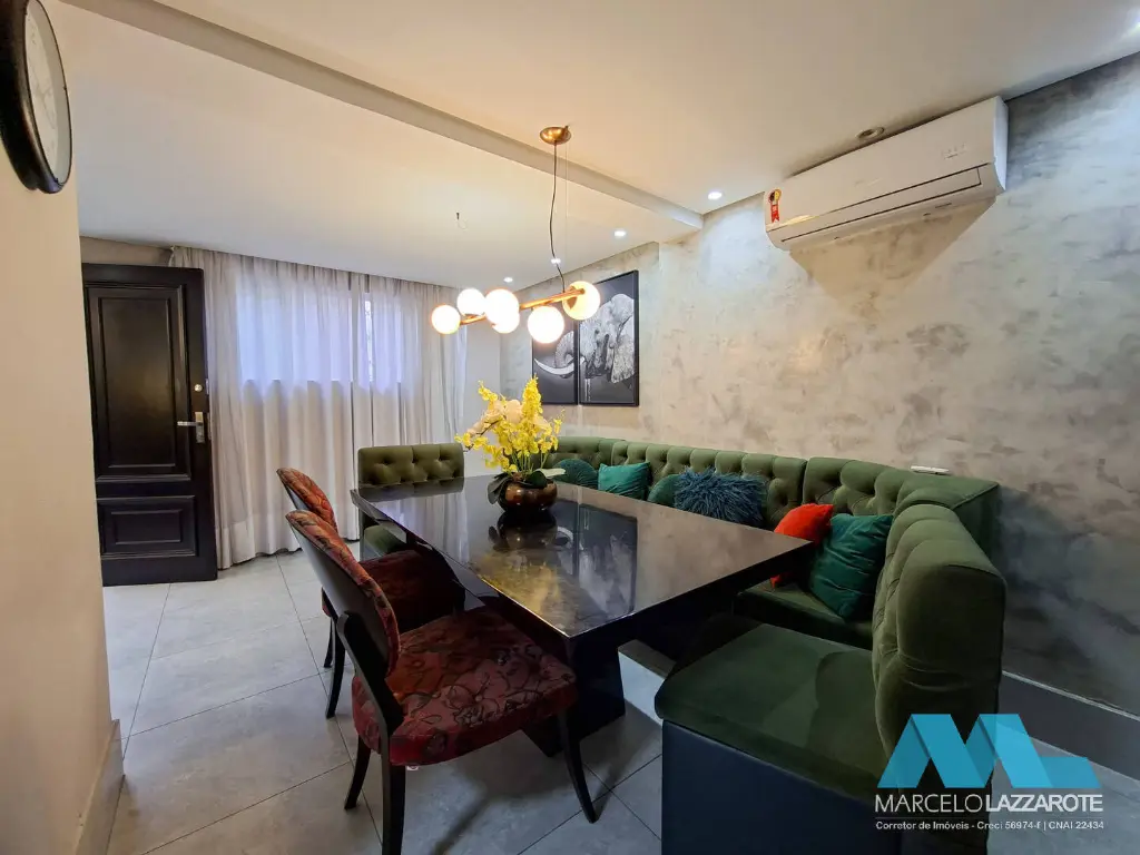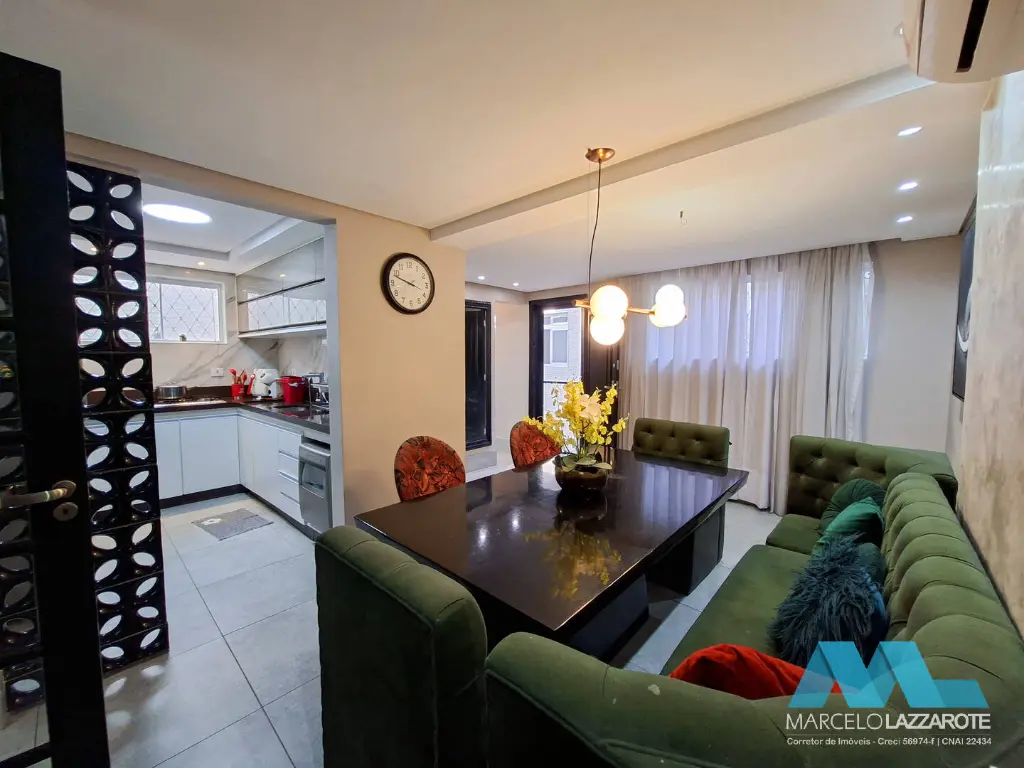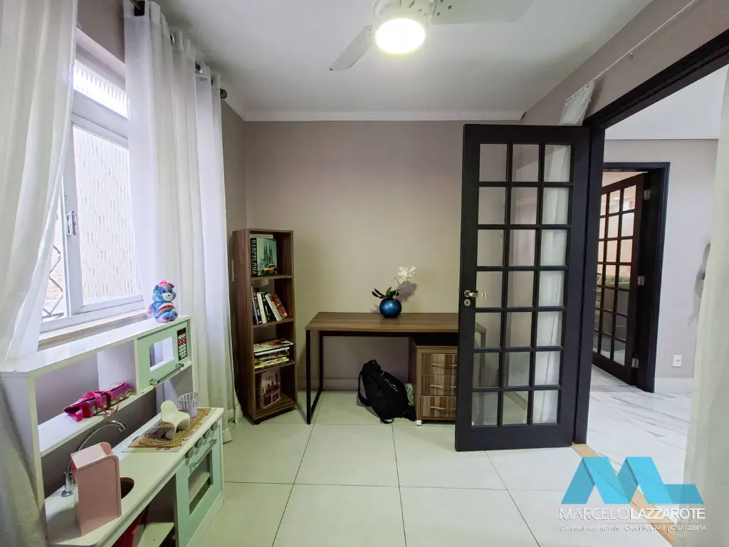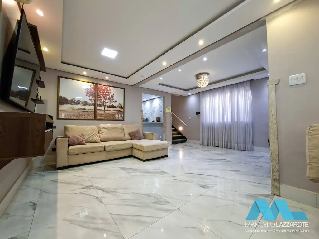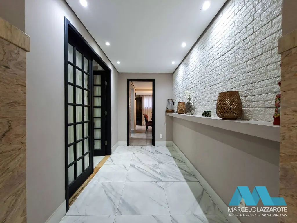 Piso inferior: sala ampla para 2 ambientes, home office, sala de jantar, cozinha, lavabo, lavanderia, edícula com 1 suíte, canil, piscina com cascata, churrasqueira e 2 vagas de garagem coberta com portões automáticos.