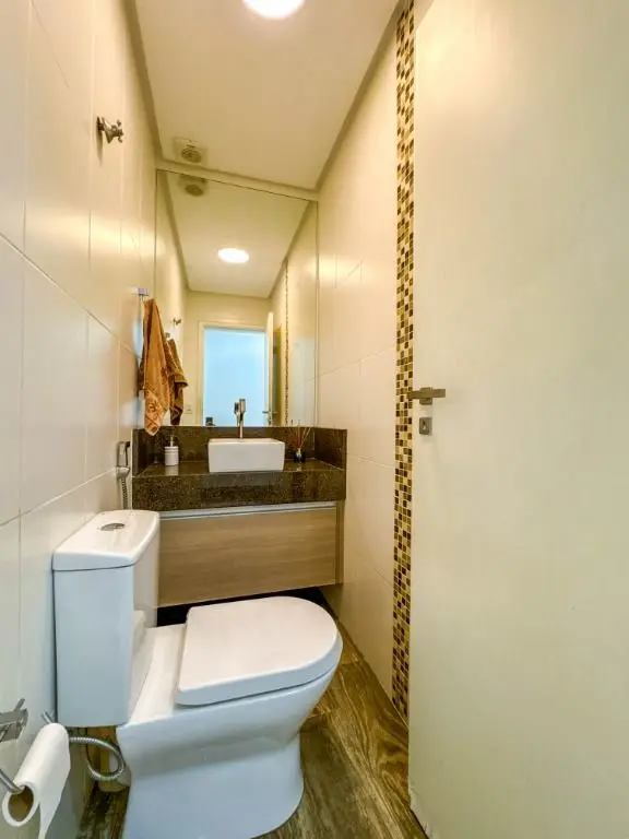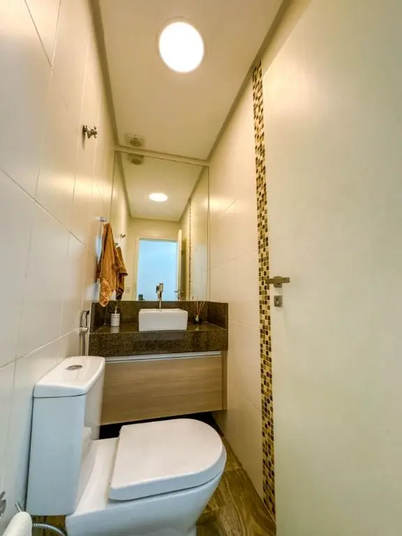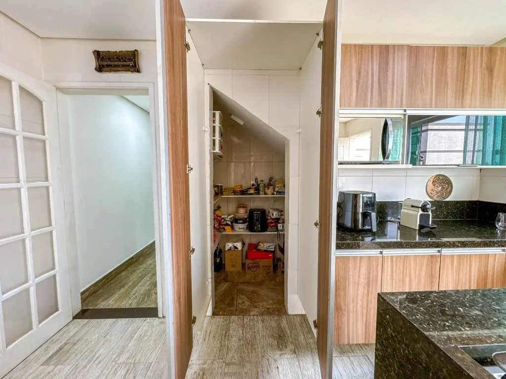 cozinha planejada, dispensa, lavabo e área de serviço.
