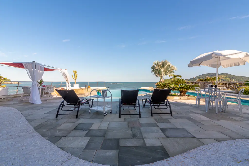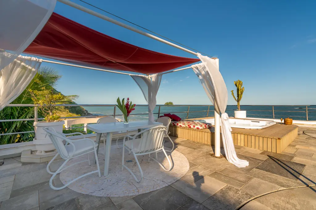 Finamente mobiliadas e decoradas. 10 espaçosas e elegantes suítes, banheiras de hidromassagem, varandas e muita vista para o mar. Os revestimentos das suítes são em porcelanato entremeados com mármore.