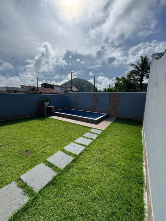 Amplo quintal com gramado, trazendo beleza e espaço para momentos ao ar livre.