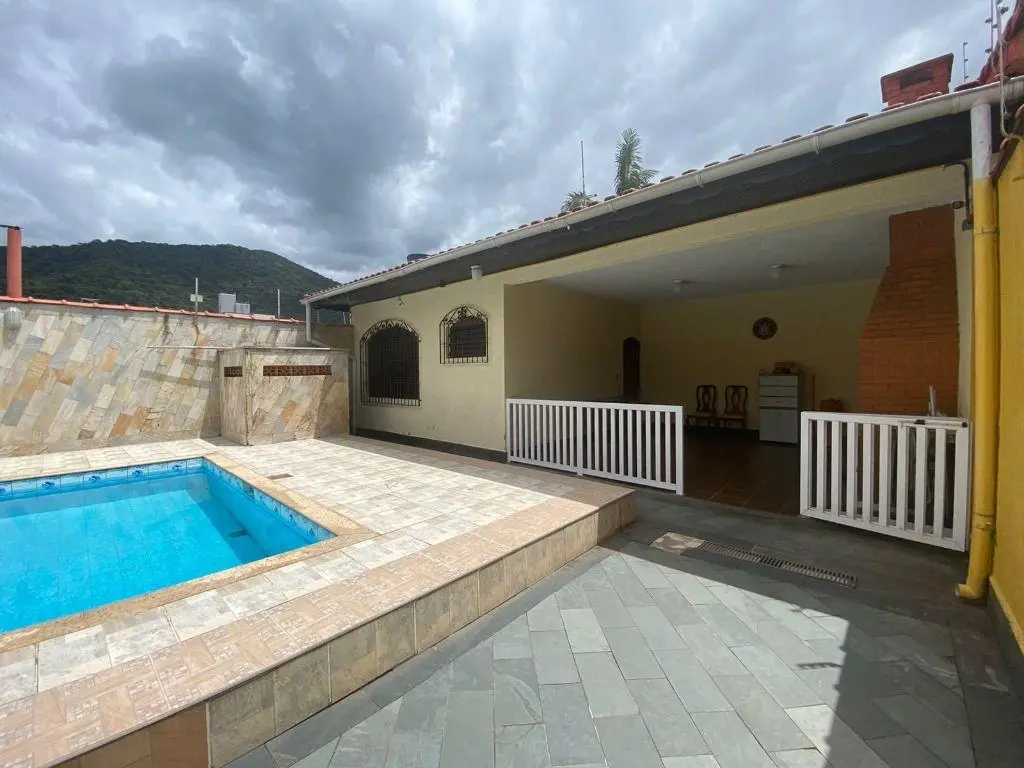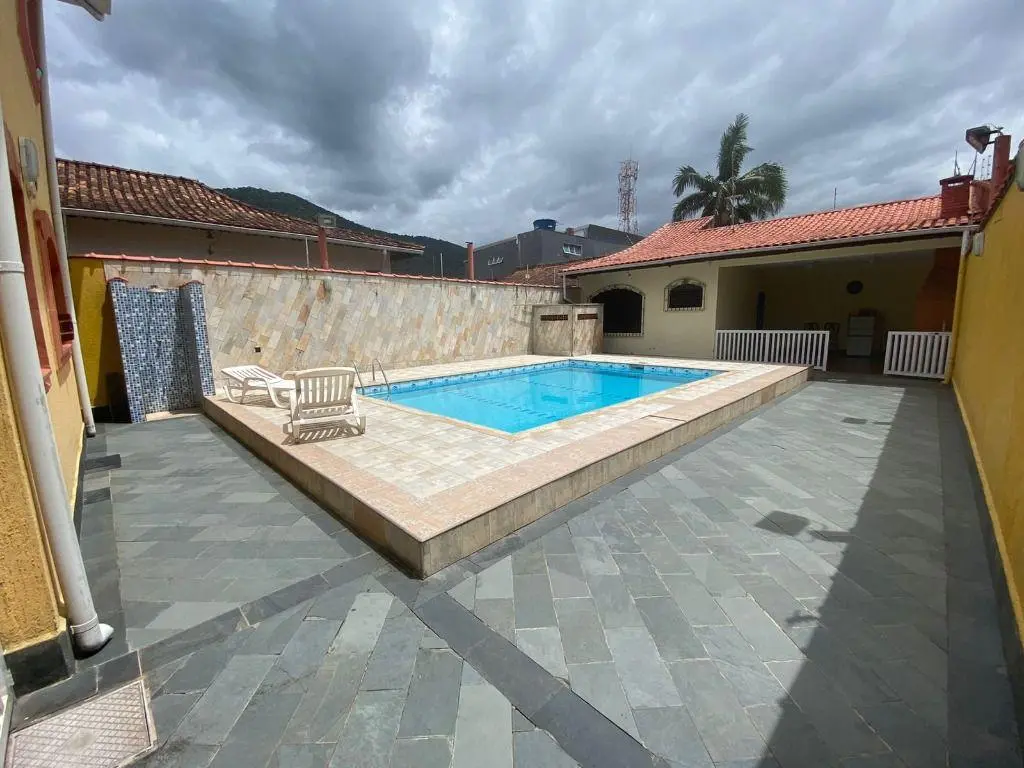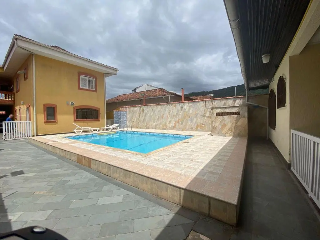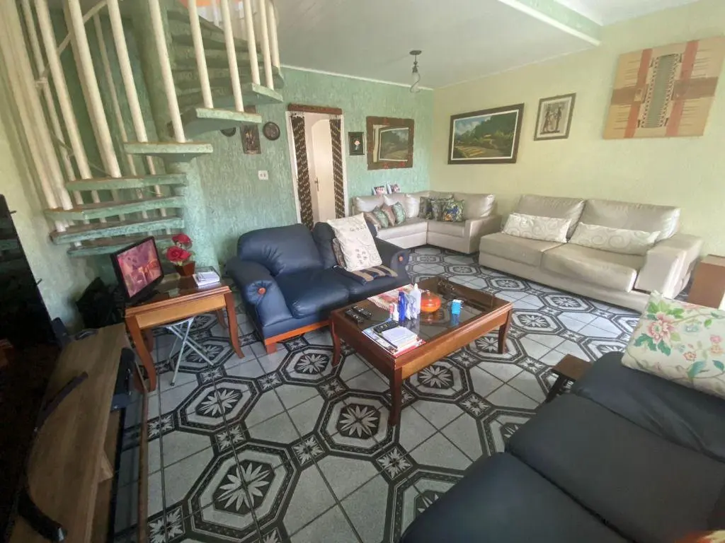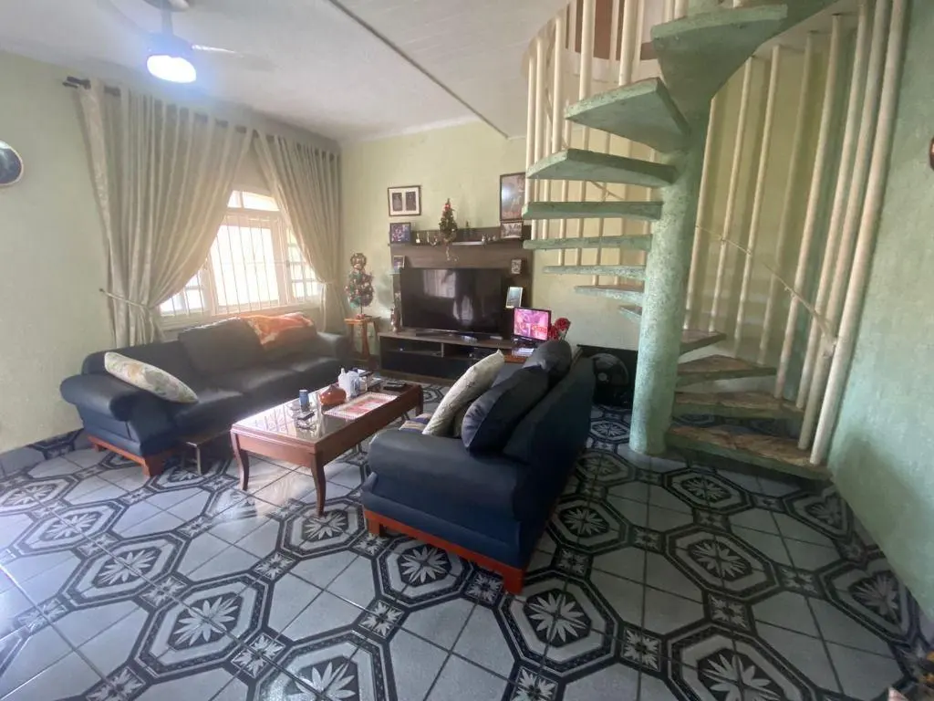 Sobrado em Praia Grande Jardim Solemar, Sobrado com 3 dormitórios sendo 1 suíte, Sala para dois ambientes, cozinha, área de serviço, banheiro, edícula com suíte, piscina, churrasqueira, 5 vagas de garagem.